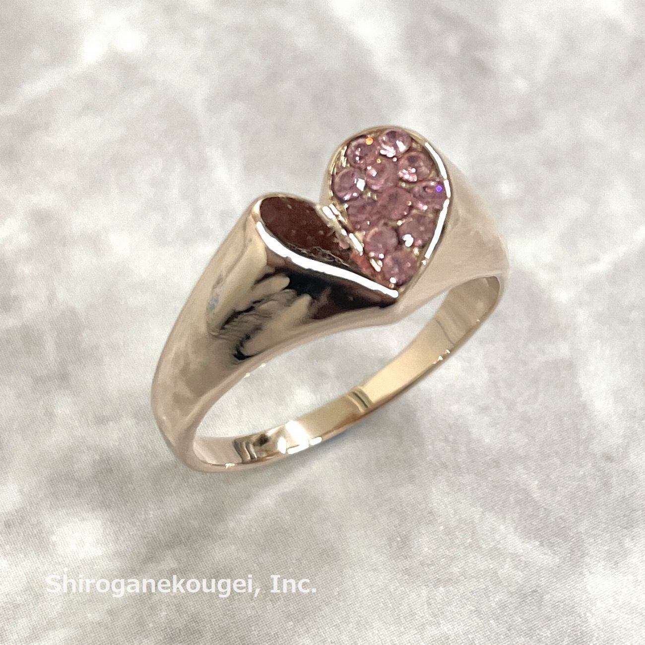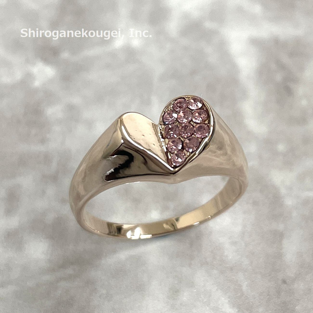 ハートの片側にクリスタルを散りばめた煌びやかなリング☆