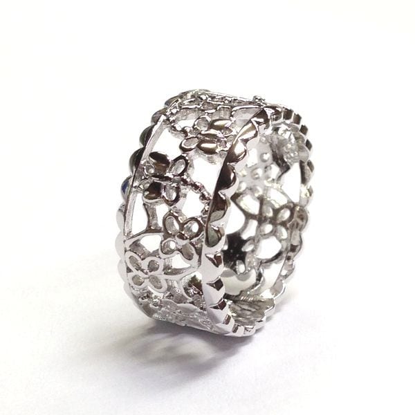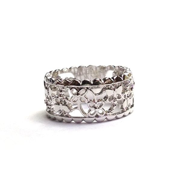 幅広のシルバーリング☆花や蝶を散りばめた可愛らしいデザイン