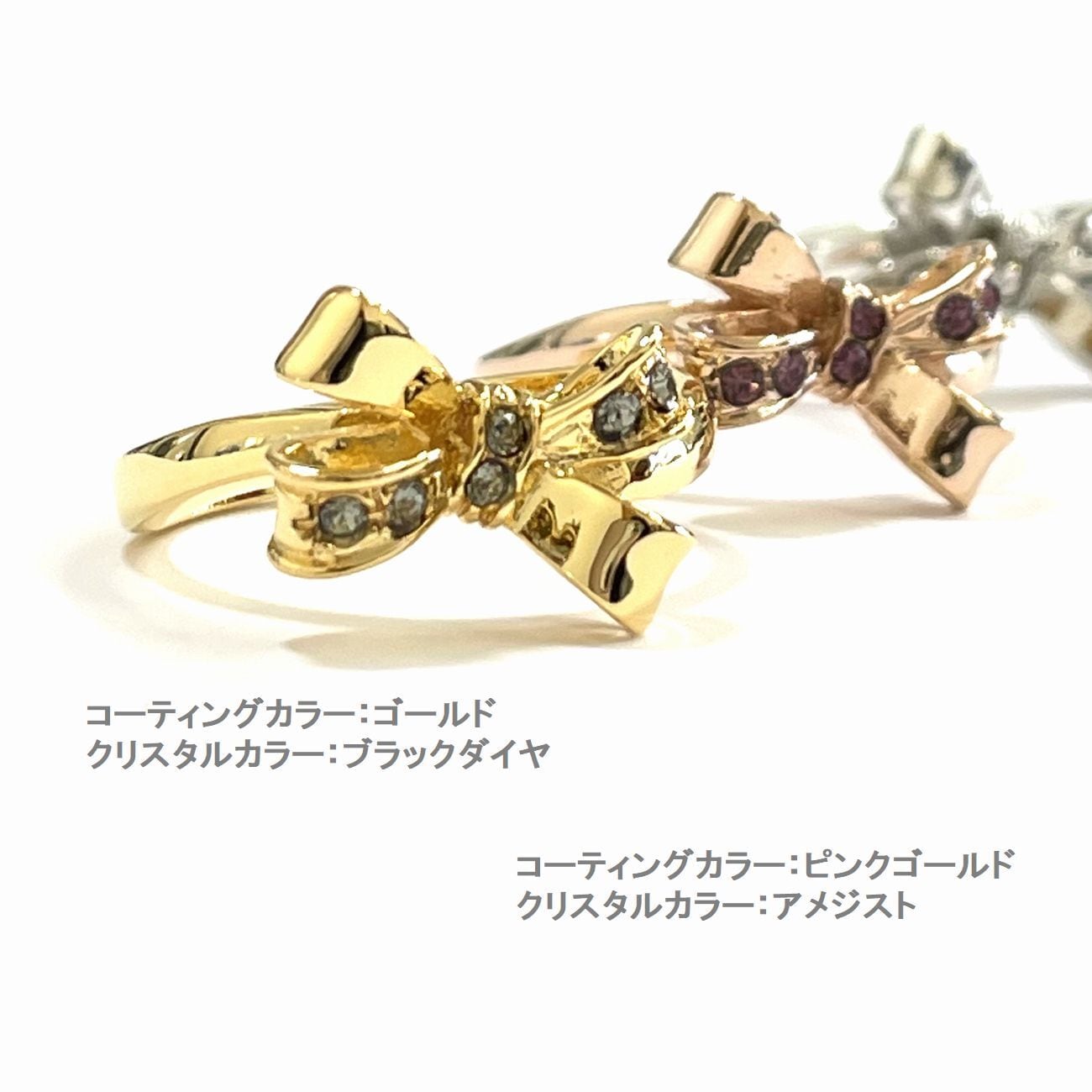 蝶結びにクリスタルを埋め込んだ☆リボンリング / BR-7028